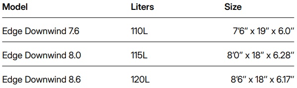 “The Edge Downwind was shaped to make flying in light wind as natural as paddling. The long, narrow outline reduces drag and accelerates effortlessly, while the refined rocker and volume distribution give you early lift, control, and stability in real ocean conditions. It’s a board built to go far, linking bumps, carving lines, and staying in flow.”